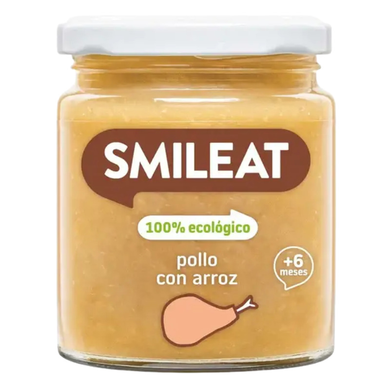 Para la elaboración del tarrito Smileat de pollo con arroz, utilizamos solo arroz procedente de agricultura ecológica, así como todas sus verduras y el aceite de oliva extra virgen ecológico y producido en España, lo mismo que utilizamos para todos nuestros tarritos para las comidas.