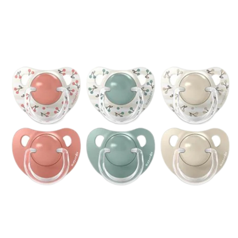 Chupetes con tetina de silicona pensada para no invadir la cavidad oral y proporcionar al bebé la misma sensación que experimenta en su estado