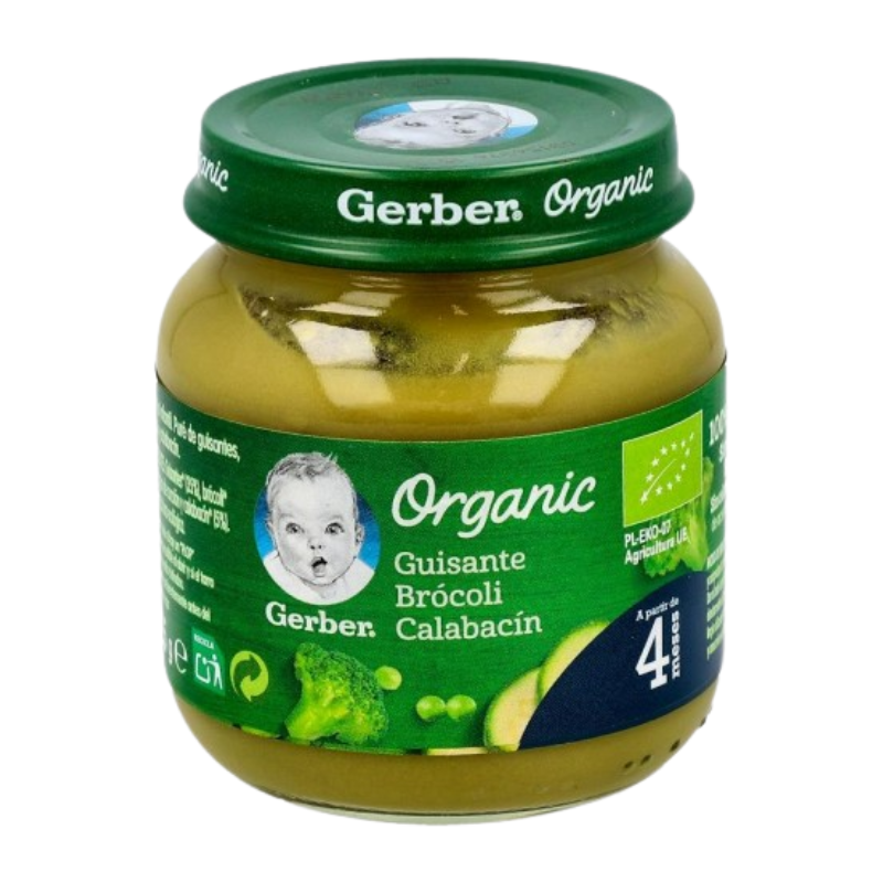 Gerber Tarrito Organic Guisante Brocoli Y Calabacin 125G es un tarrito de comida para bebés, elaborado con ingredientes orgánicos que garantizan su calidad y beneficios nutricionales.