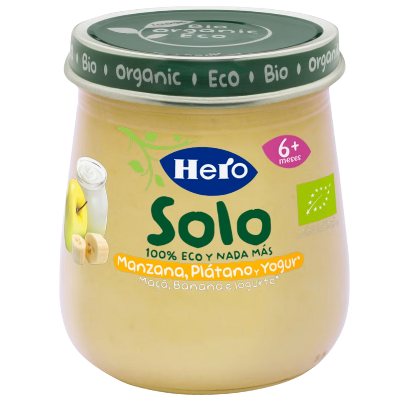 Alimento infantil a base de Manzano, Plátano y Yogur.