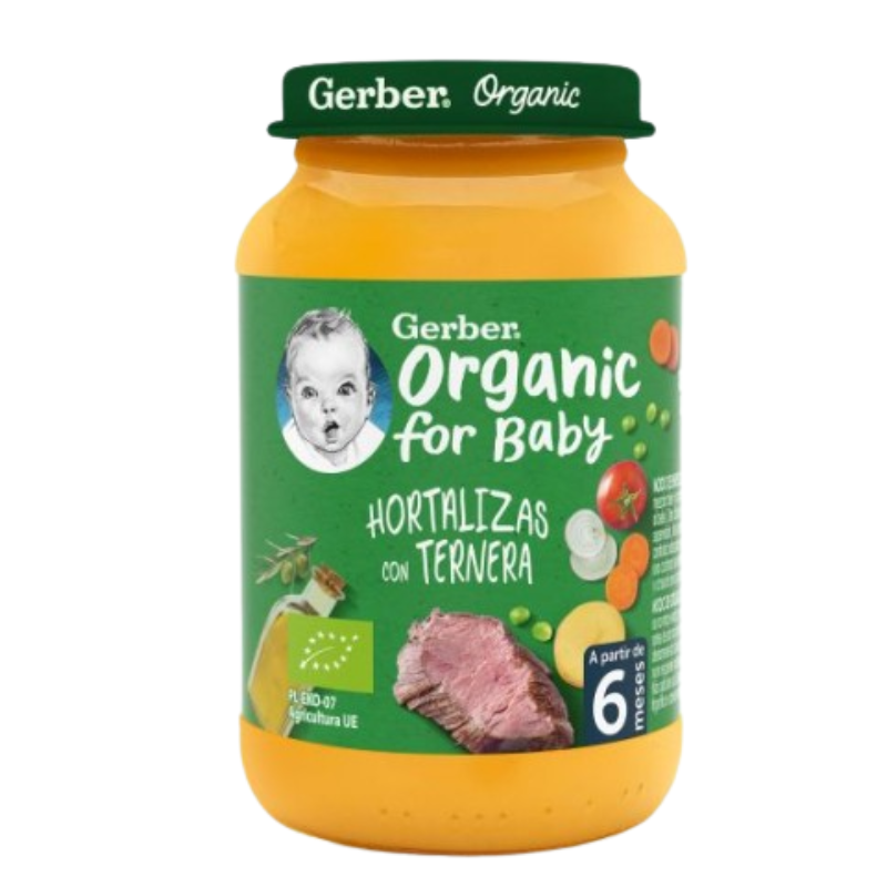 El tarrito para bebés ecológico GERBER Hortalizas con Ternera es una perfecta combinación de hortalizas y carne para tu bebé.
