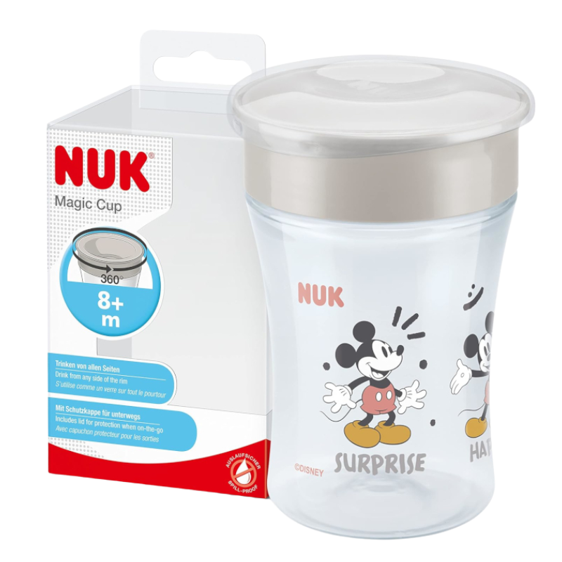 Este vaso de aprendizaje NUK presenta una forma única en la que permite beber fácilmente desde todos los lados (borde 360º).