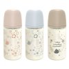 Biberones premium de vidrio con tetina redonda tres posiciones de silicona con capacidad de 240 ml. Color disponible según stock.
