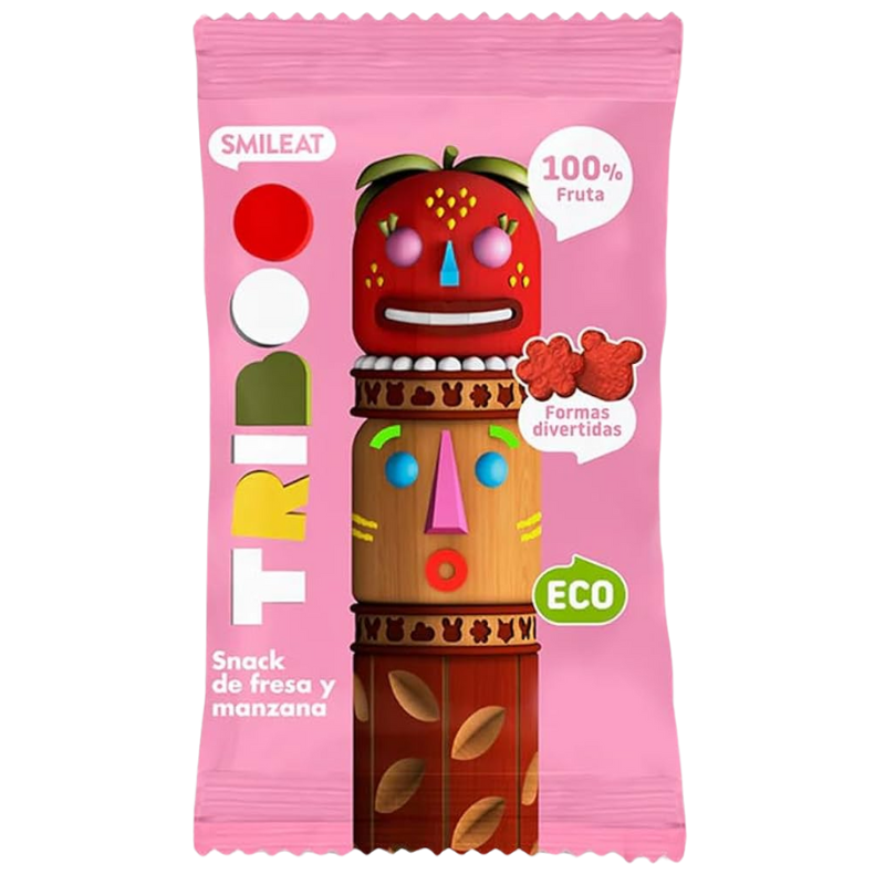 Snack infantil con 0% azúcar añadido ni edulcorantes o aditivos elaborado con un solo ingrediente: fruta 100% ecológica.