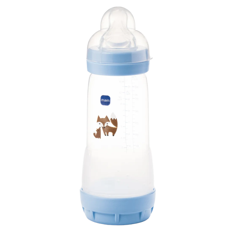 Biberon con tetina de silicona para bebés a partir de 4 meses.