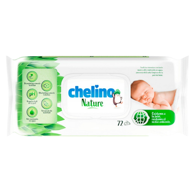Las toallitas Chelino Nature® tienen un alto contenido en agua, elementos que respetan el pH de la piel del bebé y ofrecen sensación de suavidad.
