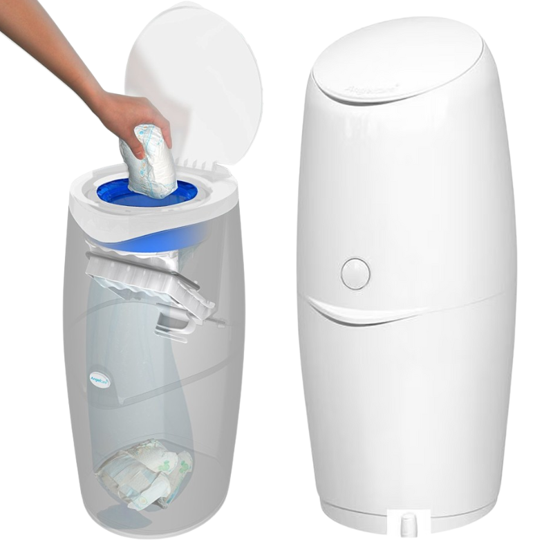 Los pañales sucios están almacenados de forma segura para que no tenga que tocarlos ni olerlos de nuevo.