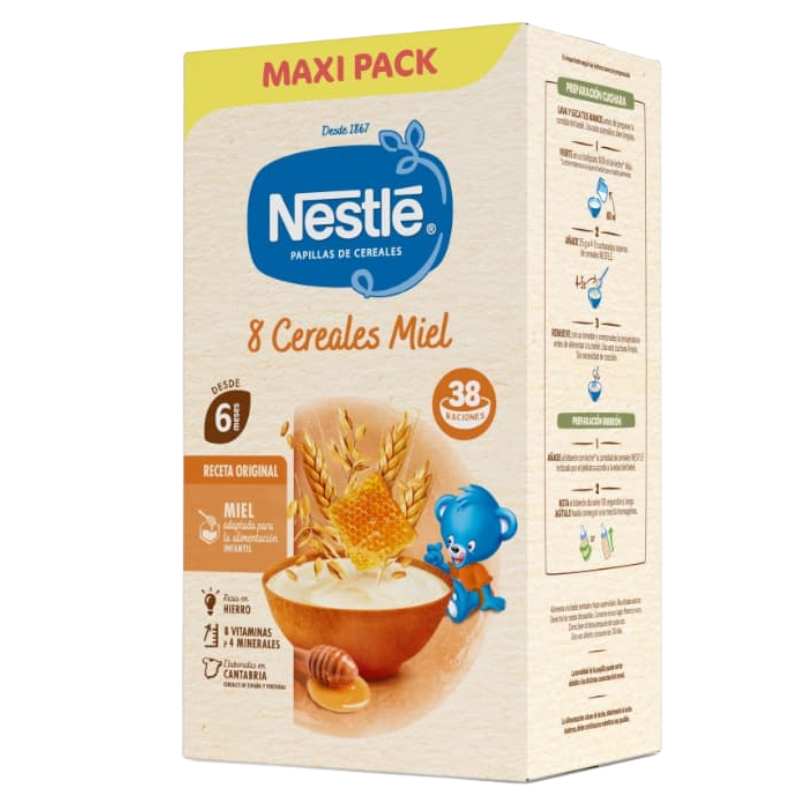 Nestlé Papilla 8 Cereales con Miel es una deliciosa opción de alimentación complementaria para bebés a partir de 6 meses. Esta fórmula combina cereales integrales y miel adaptada para ofrecer un producto nutritivo que favorece el desarrollo cognitivo en esta etapa tan importante. Contribuye, además, a la dieta diaria con un significativo aporte de vitaminas y minerales, especialmente hierro, esencial para el crecimiento de tu pequeño.