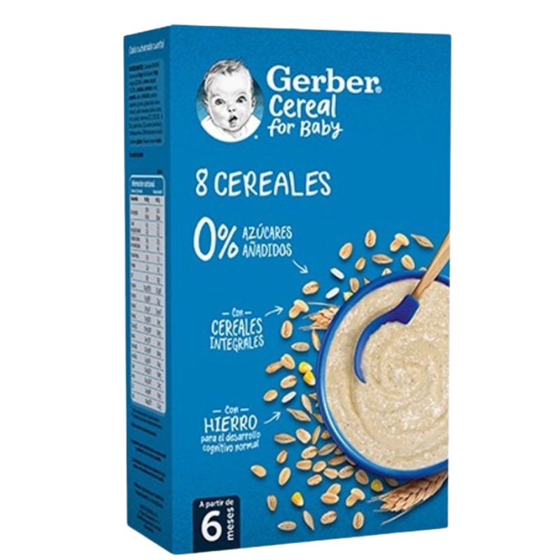 GERBER Papillas 8 Cereales +6M son unas papillas de cereales para bebés con sabor 8 Cereales.