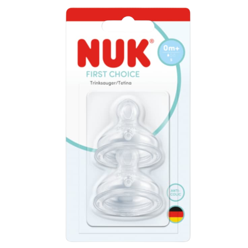 La forma ortodóntica de NUK, combinada con el apoyo labial de NUK First Choice extra ancho, hace que resulte más fácil amamantar y alternar entre el pecho y el biberón. El sistema anticólico NUK Air system minimiza el riesgo de cólico doloroso que se produce cuando el bebé traga aire.