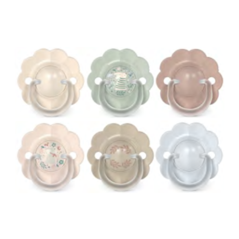 Chupete Ergonómico, ayuda a evitar que choque contra la nariz, permitiendo la libre circulación del aire entre el chupete y las fosas nasales.