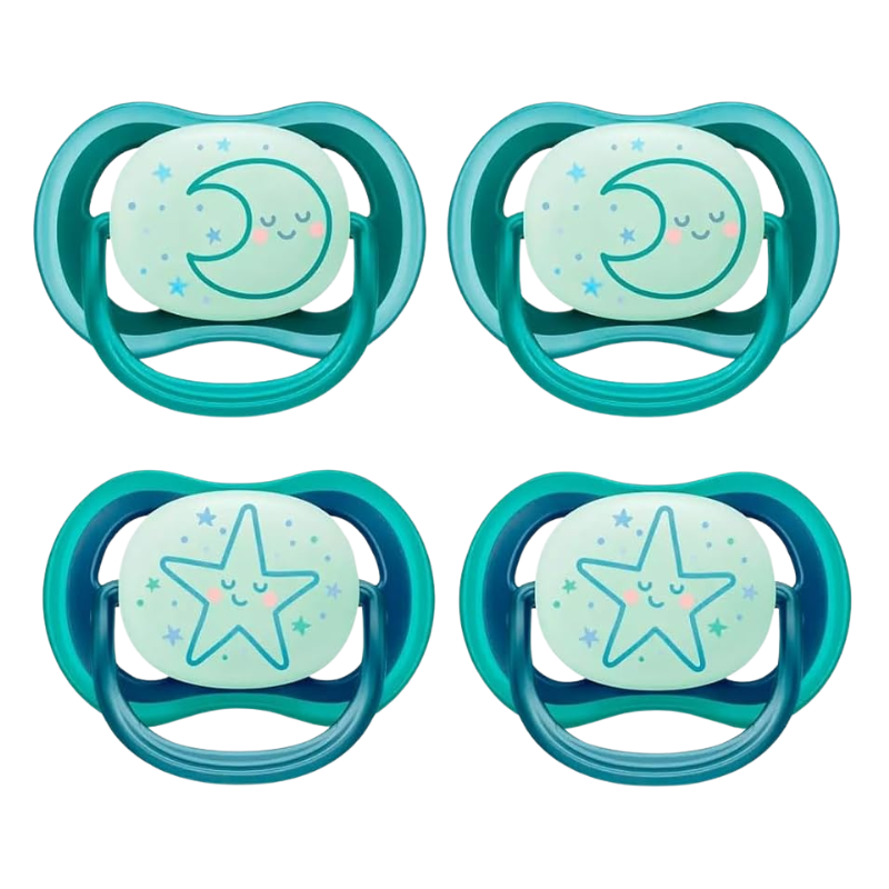 Los chupetes personalizados Philips Avent Ultra Air vienen en estuches de dos chupetes en los colores mostrados.