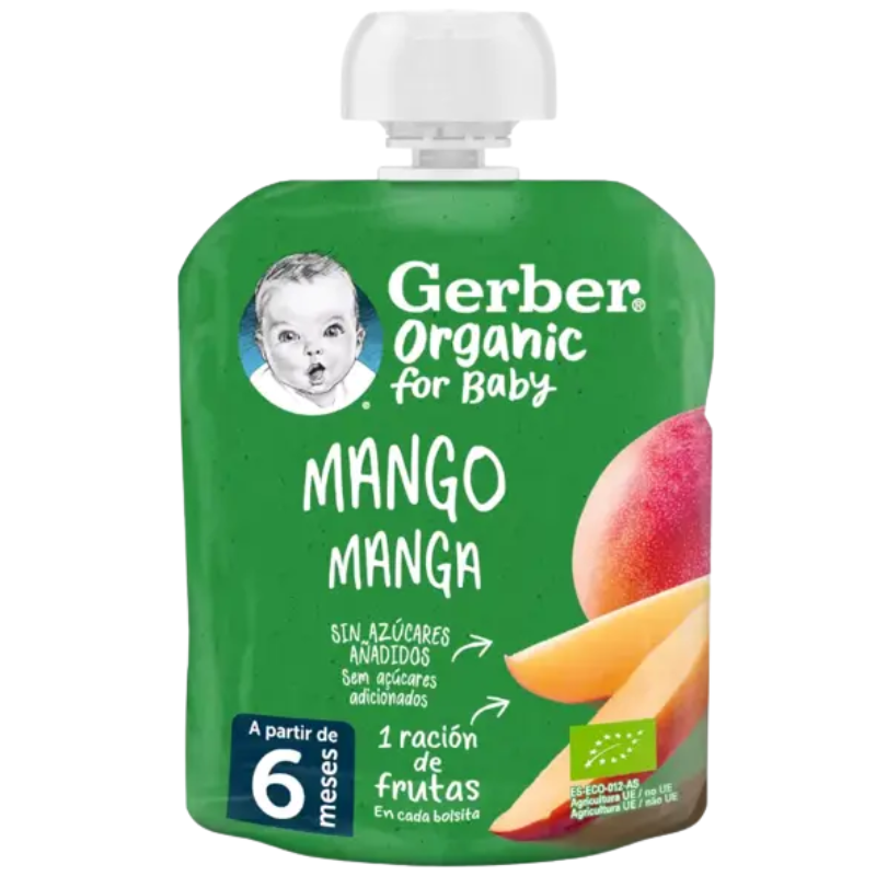 Puré de frutas para bebés sin conservantes ni colorantes.