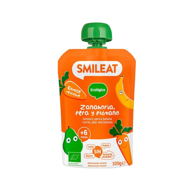 El pouch de zanahoria, pera, plátano ecológico, sin azúcar añadido ni aditivos, ¡pero con todo el sabor! Nuestro primer pouch con hortaliza.