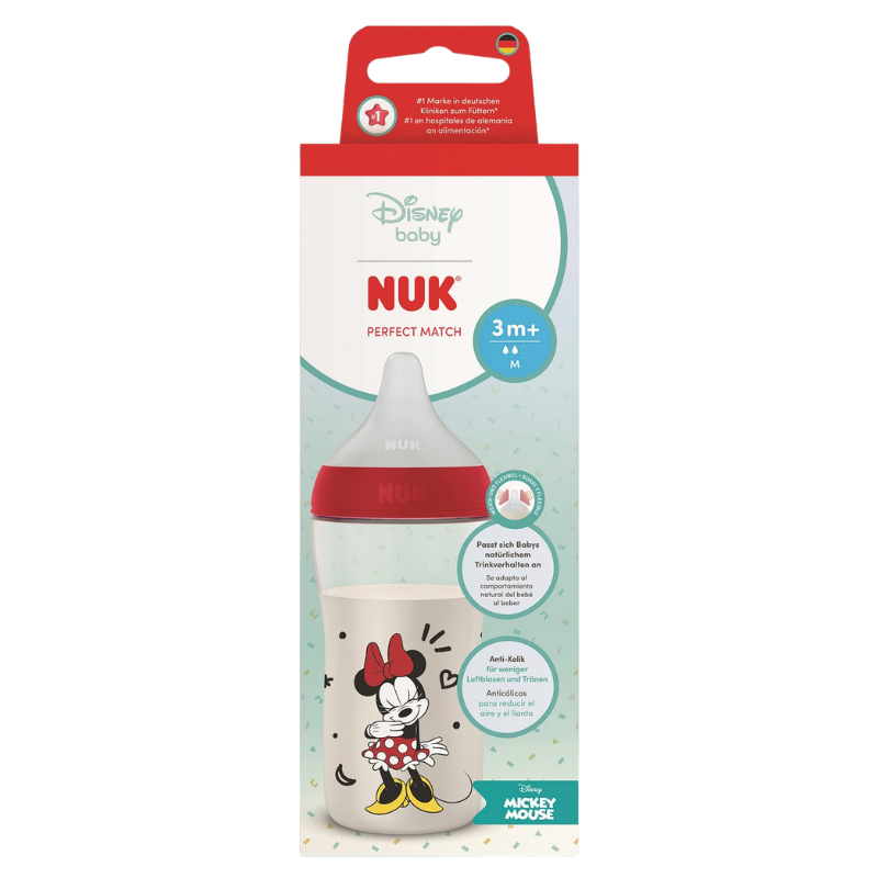 NUK biberón PP silicona perfect match flujo M 1 unidad 260ml Minnie color rojo