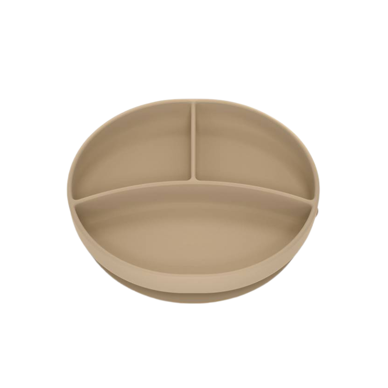 Plato de silicona flexible, seccionado en 3 espacios para separar los alimentos.