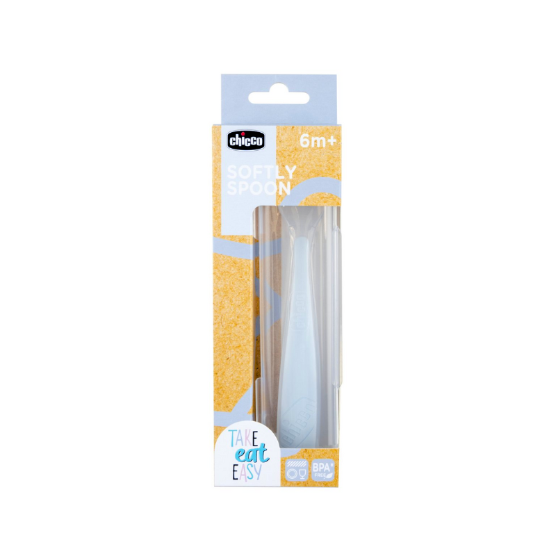 Una cuchara hecha de silicona suave, ideal para comenzar la alimentación complementaria para bebés a partir de los 6 meses.