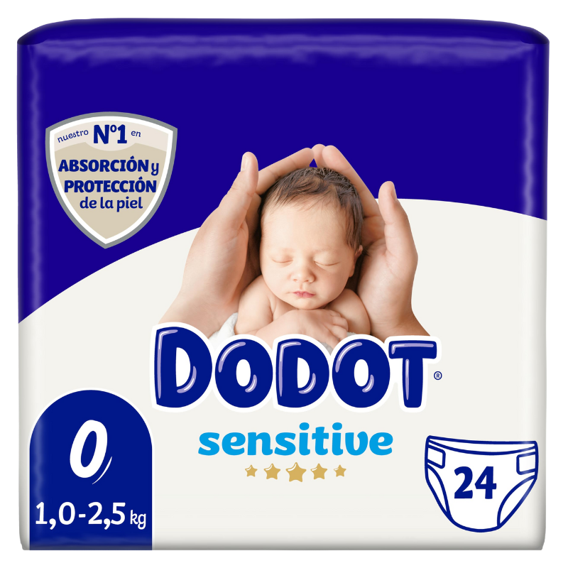 Dodot Sensitive Talla 0, 24 Unidades. Este pañal suave y absorbente ofrece un confort excepcional gracias a su máxima absorción y canales de aire que permiten la circulación.