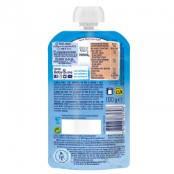 Esta bolsita combina el sabor de la leche con el puré de manzana y fresa, con una rica textura.