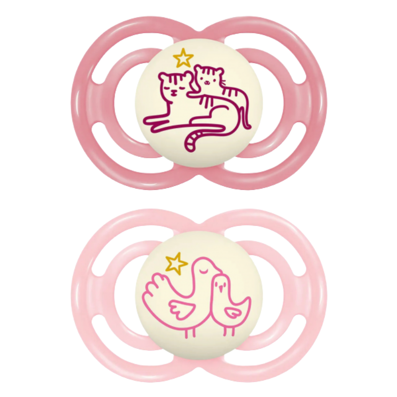 Chupete de silicona fisiológico para niños mayores de 6 meses.