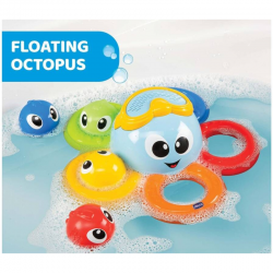 Juguete pensado para acompañar a los más pequeños en la hora del baño. Su diseño elaborado con diferentes actividades ayuda a estimular la asociación lógica entre colores y formas, además de desarrollar la coordinación de ojos, manos y aprender a situarse en el espacio. También se puede sumergir en el agua y colocarlo boca abajo para crear un efecto lluvia.