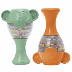MARACAS DE JUGUETE: Dos maracas con forma de mono, fáciles de agarrar y agitar para escuchar efectos de sonido. Hecho de plástico reciclado.