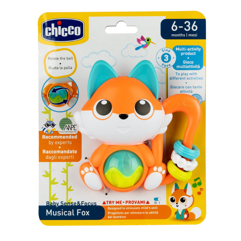 SONAJERO PARA BEBÉS: Musical Fox es un sonajero electrónico con melodías y diferentes actividades manuales, para entretener a los bebés durante sus primeros meses.
