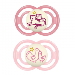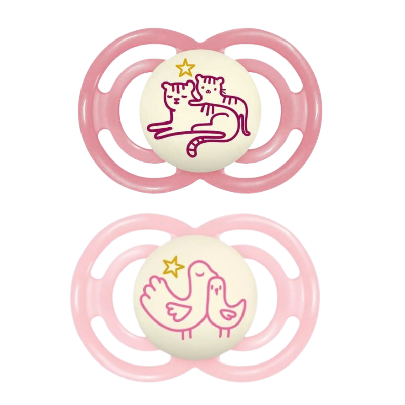 Mam Chupete Silicona Perfect Night +16 m verde doble es un pack de 2 chupetes para bebés de +16 meses, cuyo material y forma están patentados por odontopediatras.