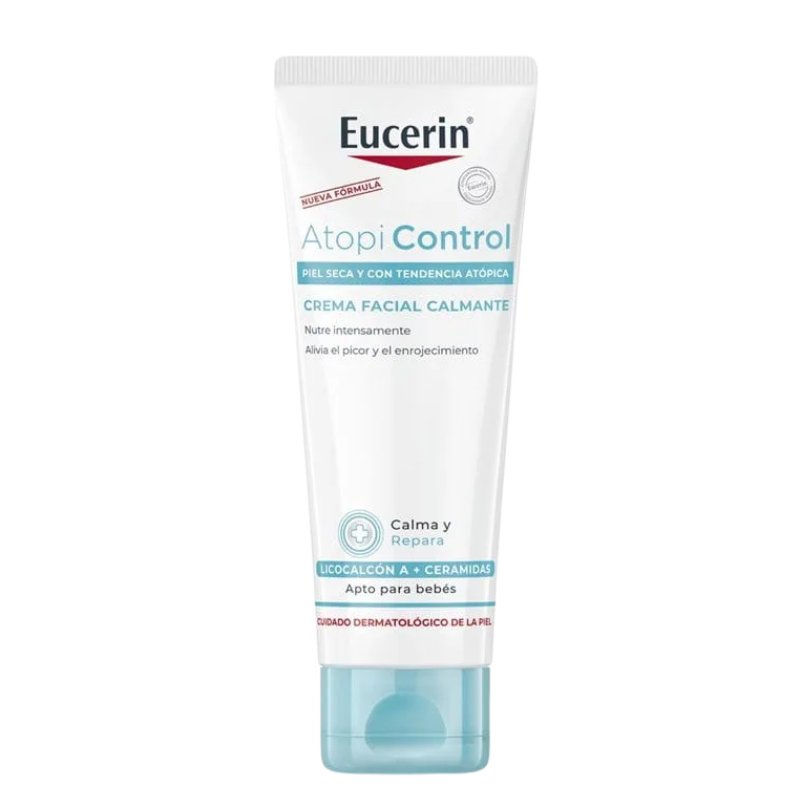 Cuidado diario de la piel, sin fragancias ni parabenos, para la dermatitis atópica facial.