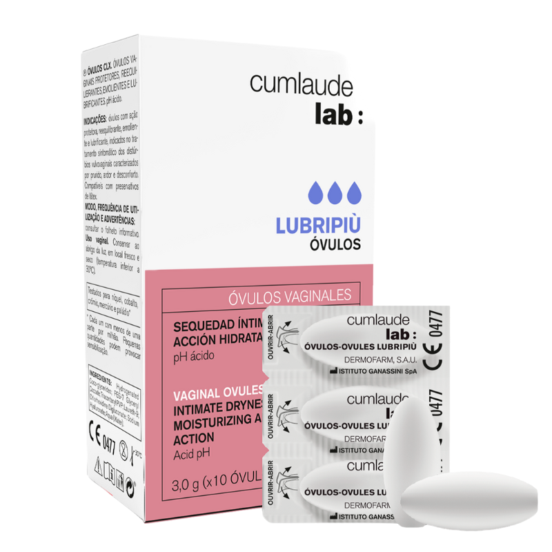 Óvulos vaginales con acción lubricante, hidratante y calmante para contrarrestar la sequedad vaginal.