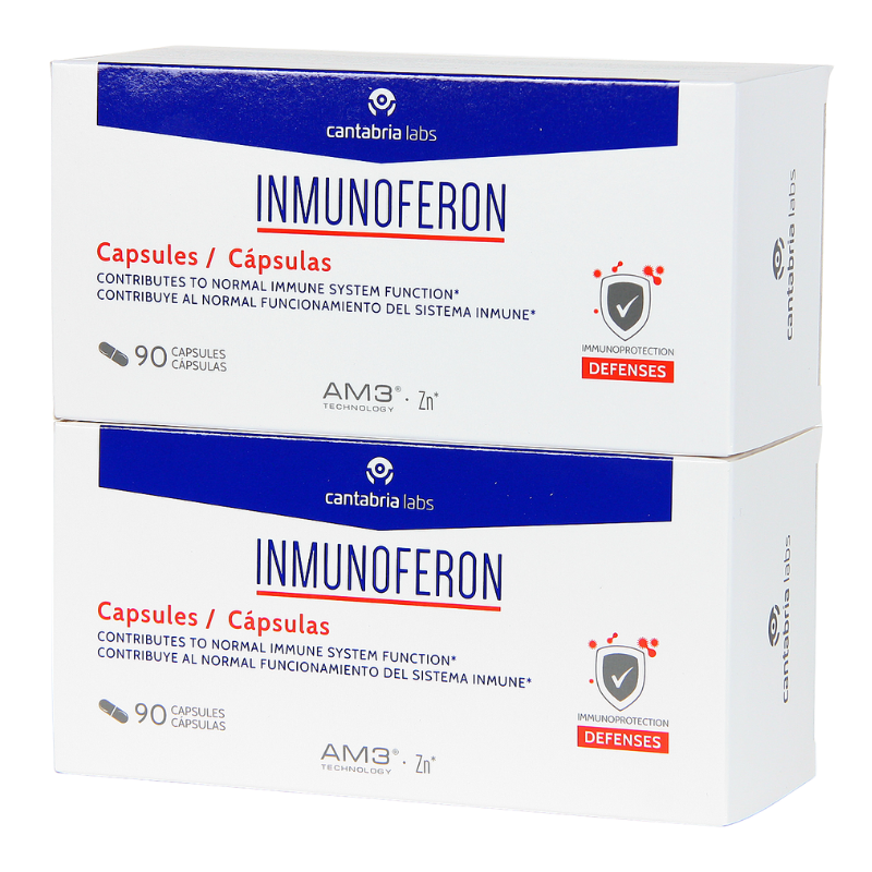 INMUNOFERON es un complemento alimenticio con una fórmula exclusiva a base de AM3® (alfa glucomanano fosforilado y proteína de soja),