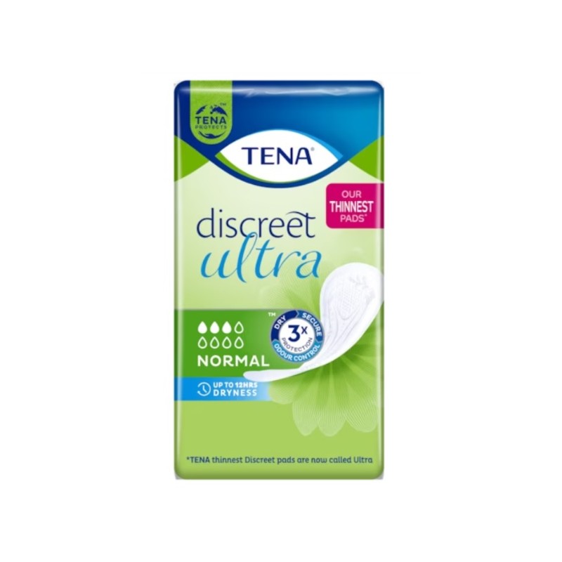 Las compresas TENA Discreet Ultra Normal son finas y ofrecen protección discreta y segura para las pérdidas de orina leves que nadie notará.