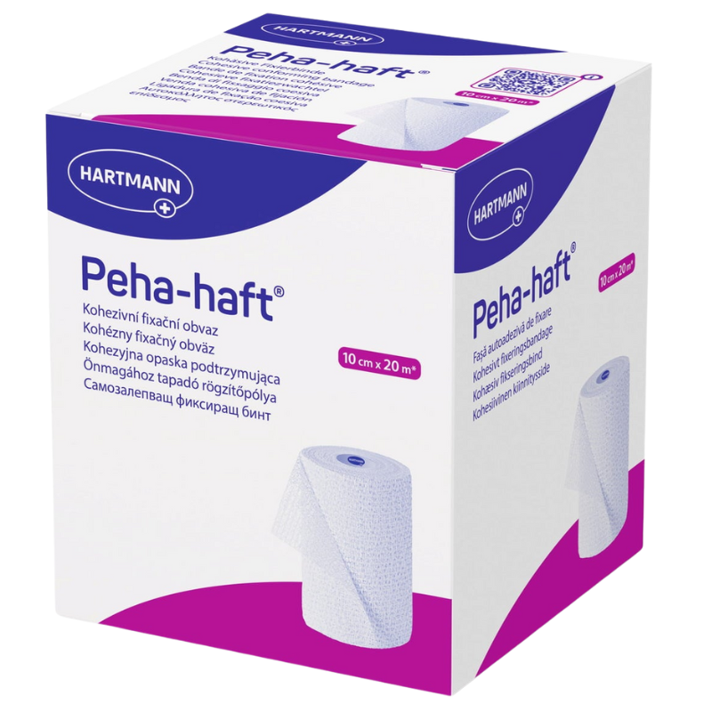 Peha-haft es una venda de fijación elástica cohesiva, con doble efecto de cohesión.