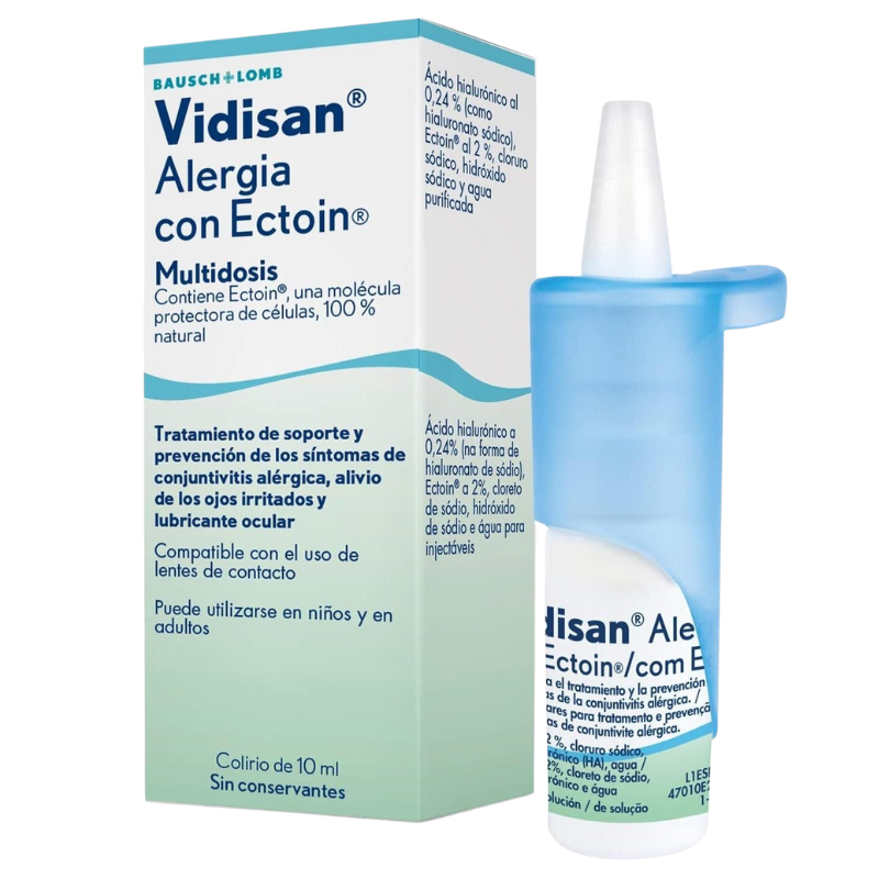 Vidisan Alergia con Ectoin es una solución isotónica que reduce eficazmente el picor, la irritación, el enrojecimiento y el lagrimeo.