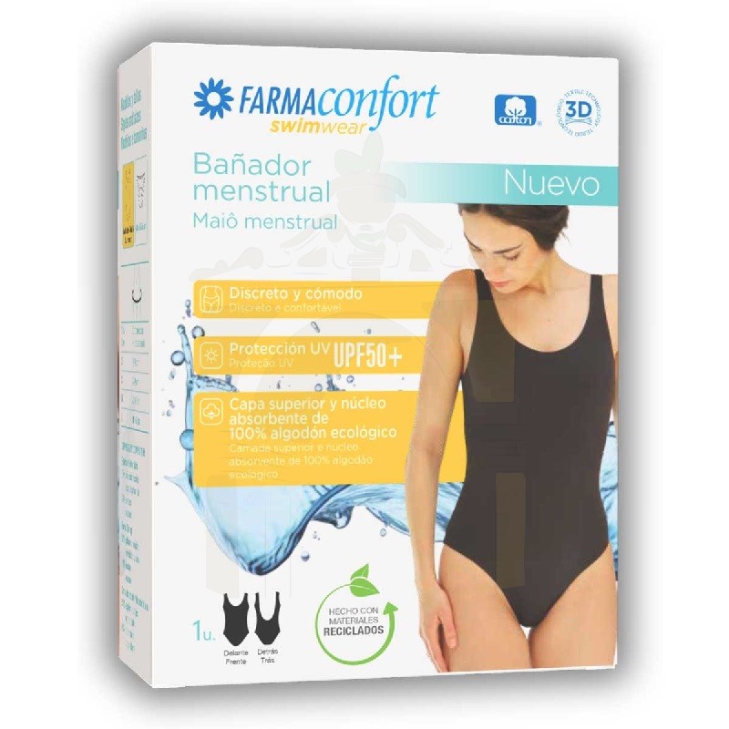 El bañador menstrual de Farmaconfort combina elegancia y funcionalidad en un diseño clásico de una sola pieza.