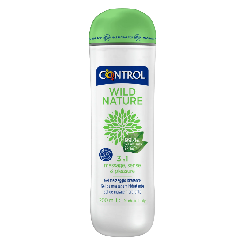 Control Wild Nature 3 In 1 Gel de Masaje 200ml gel de masaje 3 en 1 formulado a base de ingredientes naturales. Contiene tapón masajeador aportando de esta manera mayor placer.
