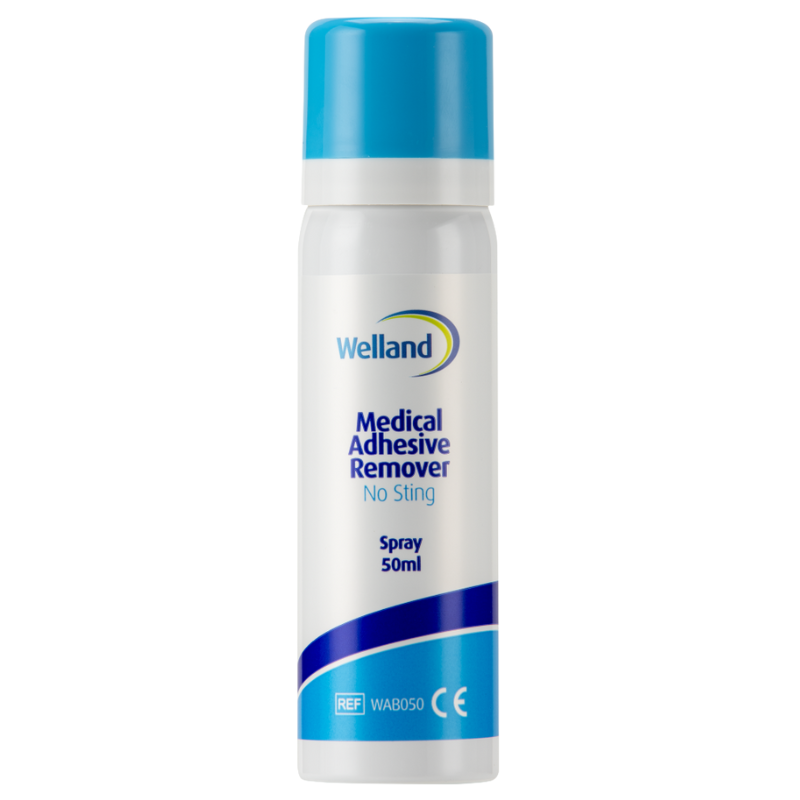 Welland adhesive remover ostomía 50ml spray - Retirada fácil, rápida e indolora del dispostivo de ostomía, no agresivo ni irritante para la piel.