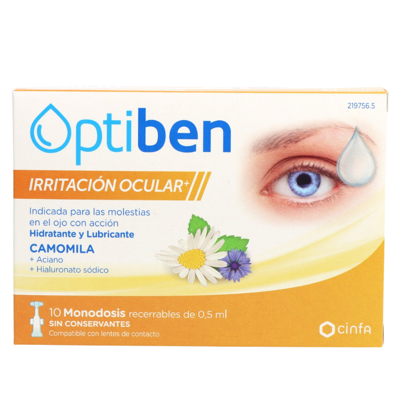 Optiben Irritación Ocular monodosis es una solución oftálmica diseñada para aliviar de forma rápida y suave molestias oculares asociadas a sequedad, irritación, picor o sequedad ambiental. Cada unidad aporta una dosis precisa de solución estéril isotónica, formulada para restaurar el confort ocular temporalmente sin sensación grasa ni escozor.