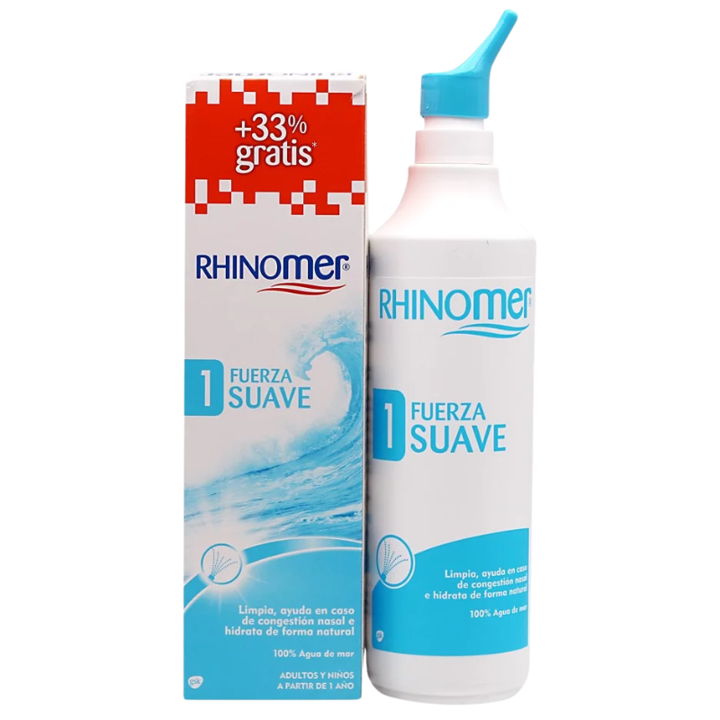 Rhinomer Fuerza 1 Suave 210 Ml es un spray nasal de agua de mar natural, pensado para favorecer la higiene diaria nasal y aliviar la congestión de manera suave. Gracias a su formato cómodo y aplicación delicada, ayuda a mantener las fosas nasales limpias sin irritar, siendo una opción segura para toda la familia.