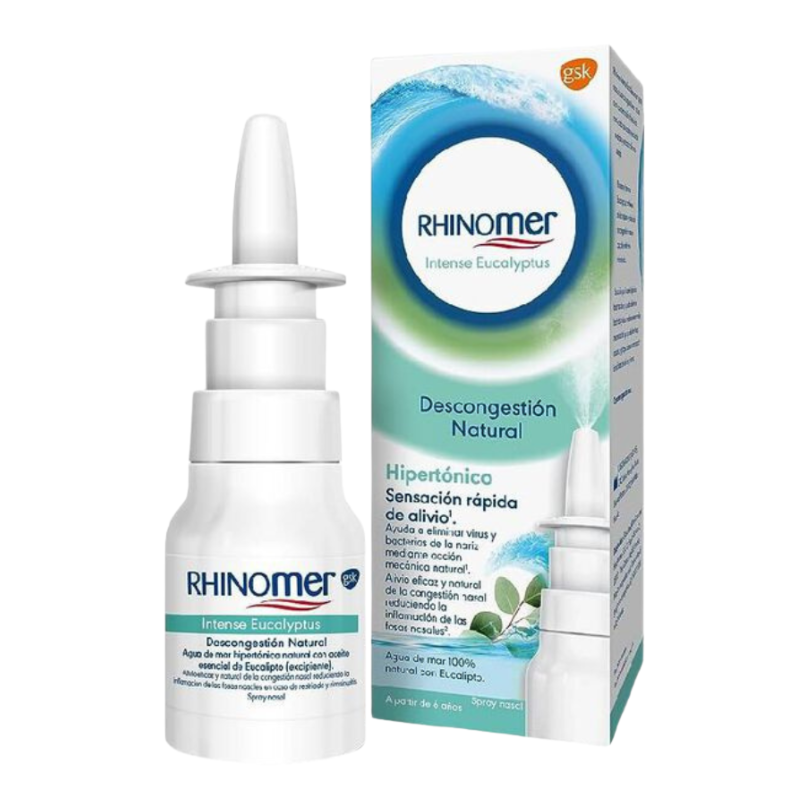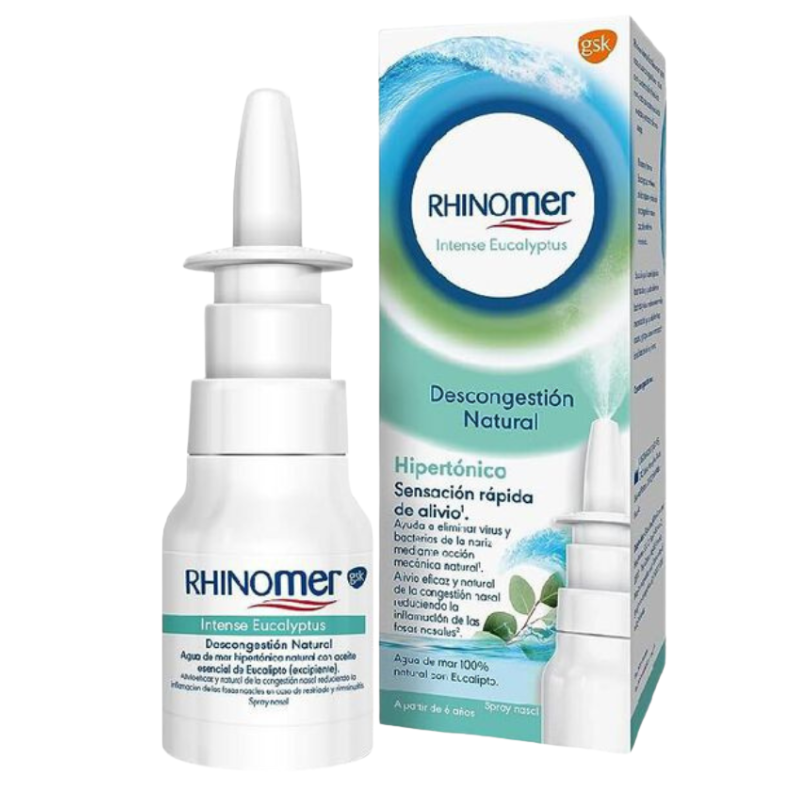 Spray nasal sin conservantes a base de agua de mar natural, a una concentración hipertónica combianada con aceite esencial de eucalipto y extracto de menta salvaje.