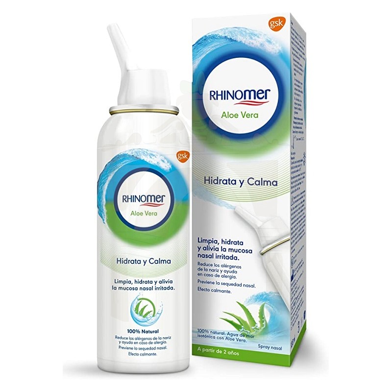 Rhinomer Aloe Vera es un spray nasal de agua de mar isotónica, 100% natural* y sin convervantes con Aloe Vera, que tiene propiedades suavizantes e hidratantes ayudando a limpiar tu nariz y a calmar las fosas nasales irritadas.