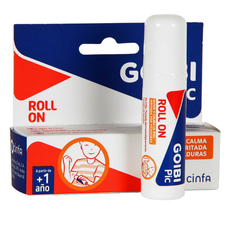 Goibi PIC Alivio Roll-On es un cuidado antipicor que alivia y calma la sensación de quemazón y picor, provocada por las picaduras de mosquitos. Su formato roll-on facilita su aplicación, la cual se recomienda que sea de manera inmediata tras la picadura, para disminuir el escozor y quemazón en la piel de toda la familia, incluidos los niños a partir de un año.