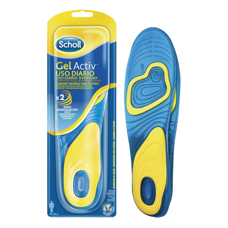 Las plantillas de uso diario para hombres Scholl GelActiv están diseñadas para absorber pequeños impactos y ayudar a reducir la excesiva presión en los pies causada por actividades como caminar o correr.Tienen la tecnología GelActiv que proporciona 24 horas de confort gracias a la absorción de los impactos y una amortiguación superior*, con un gel integrado en la plantilla, ergonómicamente diseñado.