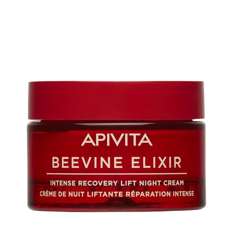Crema de noche reparadora con efecto lifting, que contiene polifenoles de uva de Santorini.