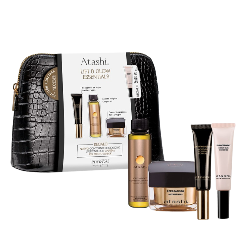 Descubre el poder de la Regeneración Suprema con el exclusivo Neceser Atashi LIFT & GLOW ESSENTIALS, un ritual completo que reúne los esenciales para rejuvenecer, iluminar y reafirmar rostro y cuerpo con un toque Glow.