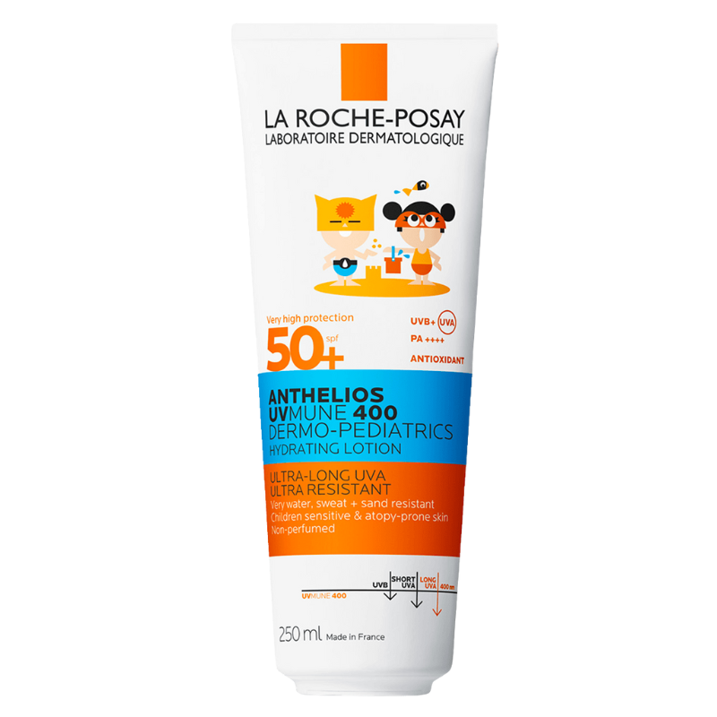 Para la piel con tendencia atópica de los niños. Protección contra rayos UVA ultralargos*. Protector solar ultrarresistente.