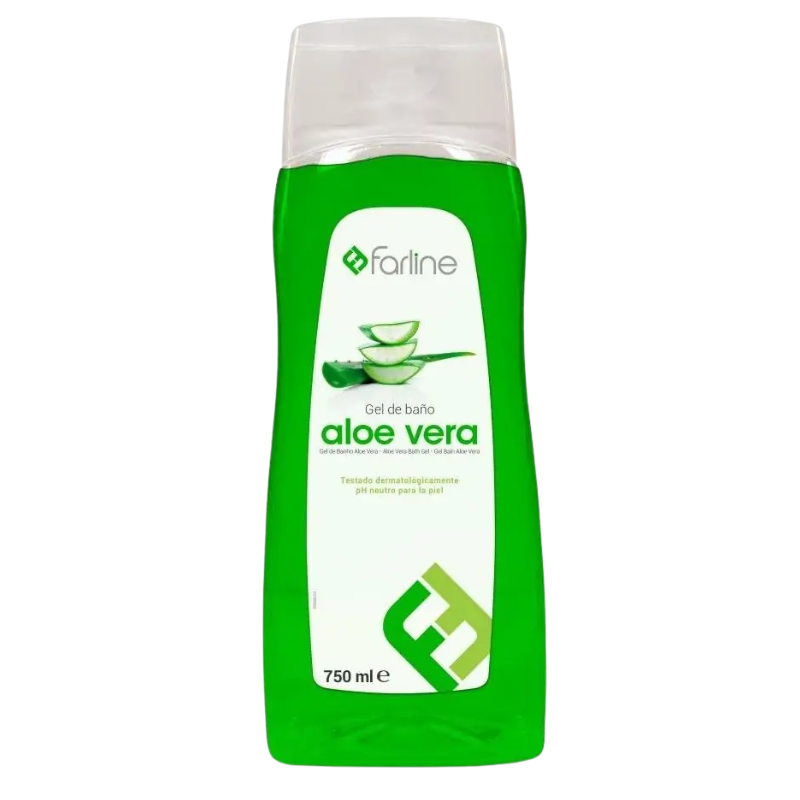 Gel de baño con ph neutro de Aloe Vera. Alto poder hidratante, calmante y con agradable fragancia. Producto de textura líquida y jabonosa formulado por Farline para garantizar un buen aseo a la piel del cuerpo. Su fórmula es ideal para usar bajo la ducha y le brinda a la piel una sensación que refresca, reconforta, hidrata y humecta gracias al extracto de aloe vera presente en el compuesto.