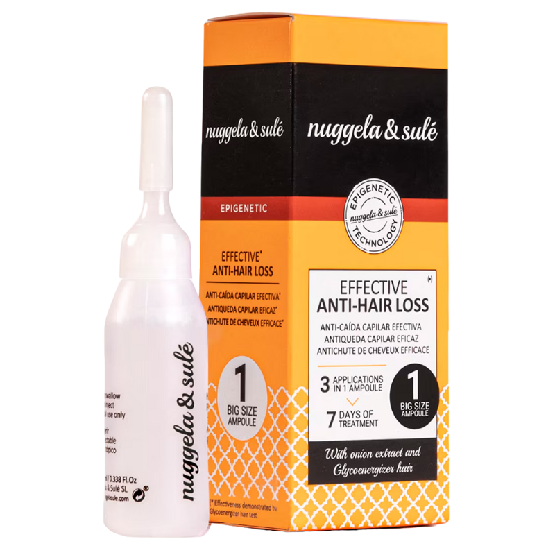 Nuggela & Sulé lanza al mercado la primera solución para combatir la caída del cabello en formato Ampollas aticaída a base de Glucógeno Marino y Extracto de Cebolla Roja de fácil manejo, alta eficacia y fácil absorción. Una alta concentración de principios activos combinando las técnicas tradicionales con las de última generación para frenar la caída del cabello y provocar una regeneración.