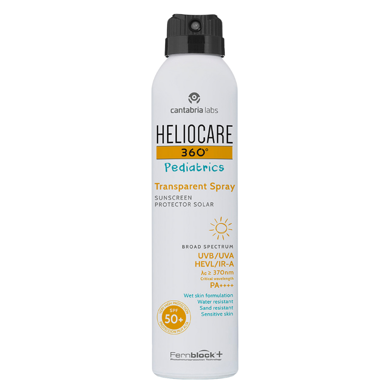 Spray fotoprotector transparente para niños, fácil de aplicar.