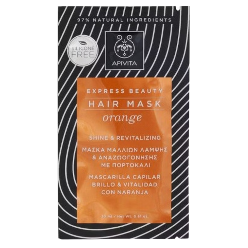 Apivita Mascarilla Capilar Brillo Y Vitalidad Con Naranja 20ml es una mascarilla formulado a base de componentes naturales como extracto de naranja que ayudan a dar brillo y vitalidad al cabello además de limpiarlo, hidratarlo y nutrirlo.